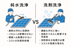 洗浄方法には「純水洗浄」と「洗剤洗浄」があり、それぞれにメリット・注意点がある。