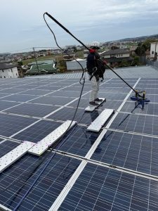 パネルが屋根に並んでおり、洗浄用器具が届かない箇所もありましたが、